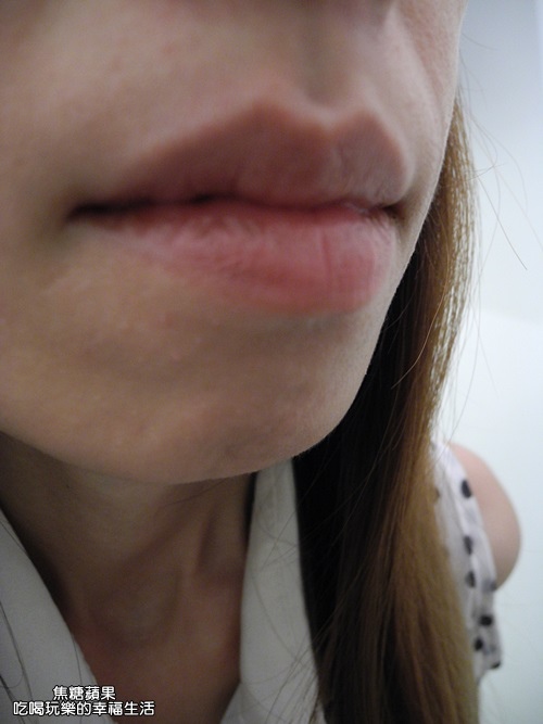 未擦上【S'SIWISS】綿羊純淨護唇膏的上唇,